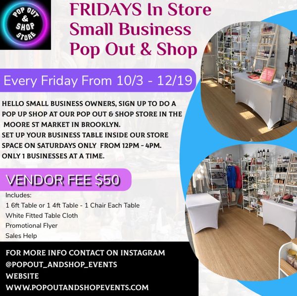 PLEASE CONTACT ON INSTAGRAM.COM/popout_andshop_events to let us know what Month you want to start.